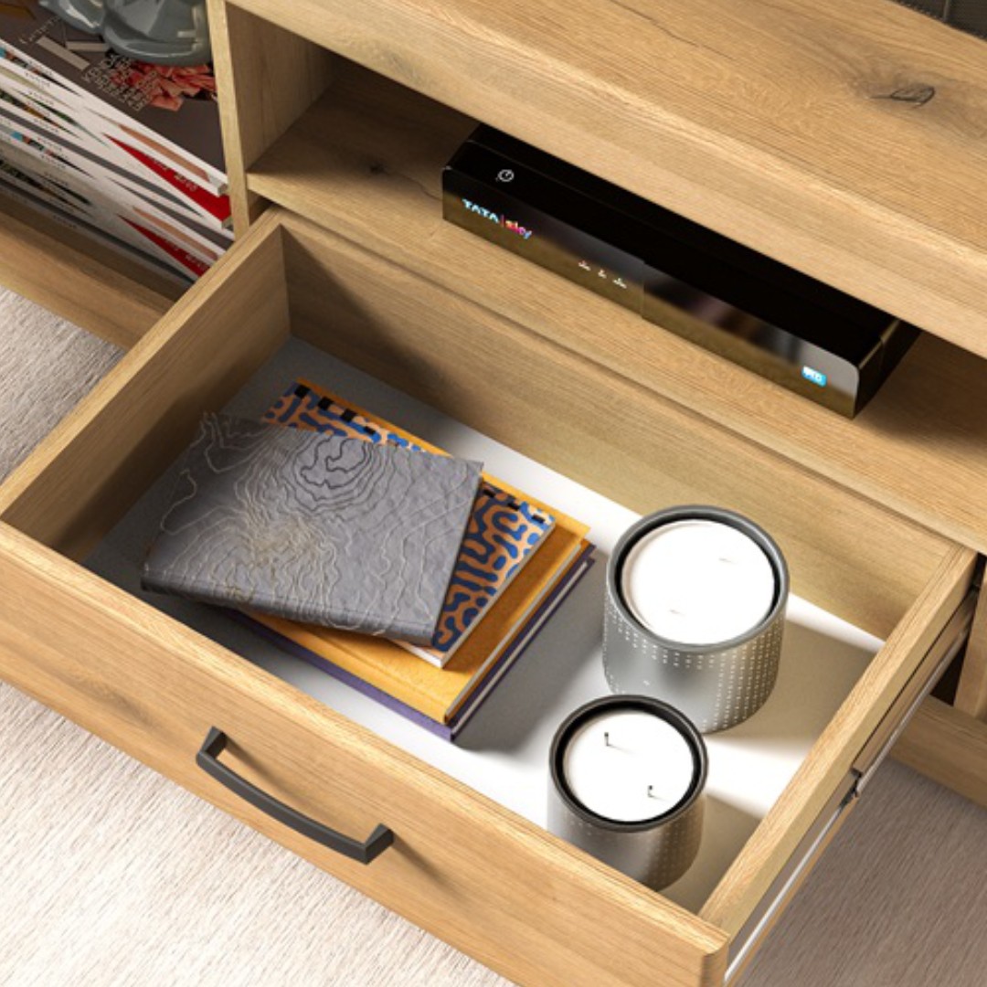 Dvířka i okrajové lišty jsou vyrobeny z MDF desky, což zaručuje pevnost a dlouhou životnost. Šuplíky jsou vybaveny plným výsuvem pro maximální pohodlí při používání a systém tichého dovírání přidává na komfortu i eleganci. Design doplňují decentní černé plastové úchyty, které podtrhují moderní vzhled celé kolekce.