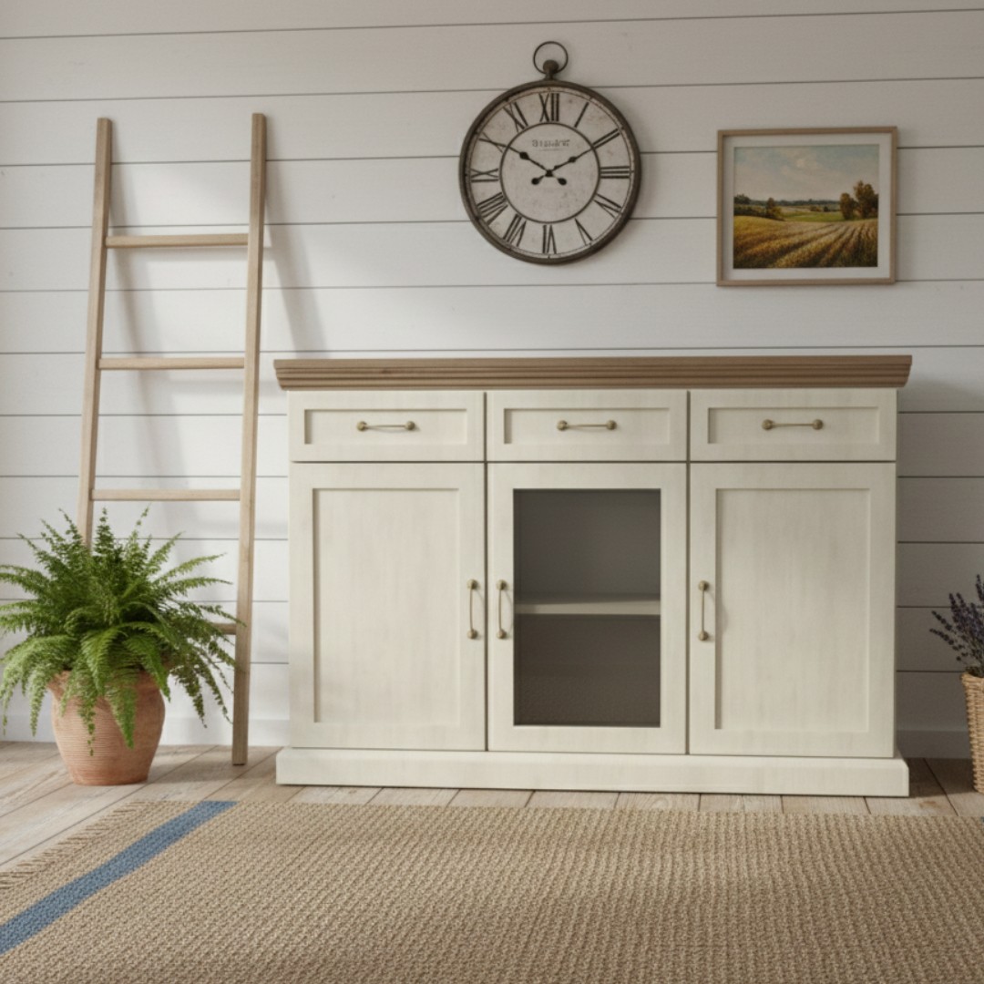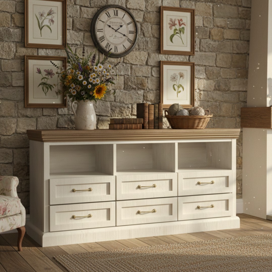Vdechněte svému domovu útulnou atmosféru venkova se sestavou JASMINA, která okouzlí světlými barvami a jemnými detaily. Tento nábytek v tradičním venkovském stylu přináší do interiéru lehkost, svěžest a harmonii. Světlé odstíny opticky zvětší prostor a vytvoří příjemné, klidné prostředí, ve kterém bude radost odpočívat. Sestava JASMINA je ideální volbou pro ty, kteří milují kombinaci klasické elegance a praktického moderního uspořádání. Proměňte domov v místo, kde se snoubí útulnost s funkčností – jednoduše, přirozeně a s nádechem venkovského kouzla.