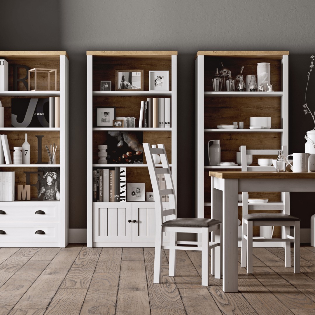 Charakteristickým znakem kolekce je nadčasová kombinace borovice andersen a dub lefkas. Světlý, lehce patinovaný odstín borovice dodává nábytku jemnost a provzdušní interiér, zatímco kontrastní tóny dubu lefkas přinášejí přirozenou kresbu dřeva a pocit pevnosti. Výsledkem je elegantní, ale zároveň velmi přírodní vzhled, který se snadno kombinuje s dalšími barvami i dekoracemi.