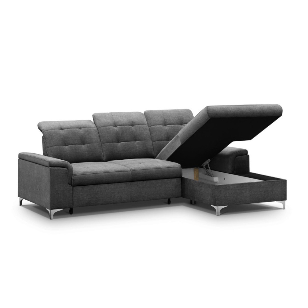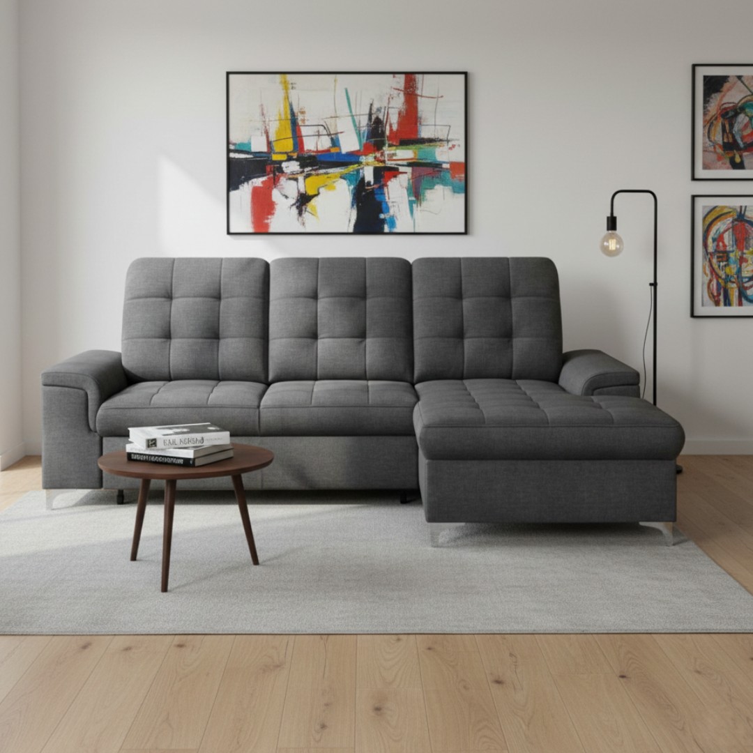 Součástí sedací soupravy je možnost rozložení. Typ Delfin. Po rozložení vznikne plocha pro spaní o rozměrech 140 x 200 cm. Nechybí úložný prostor pro uschování sezónních věcí.