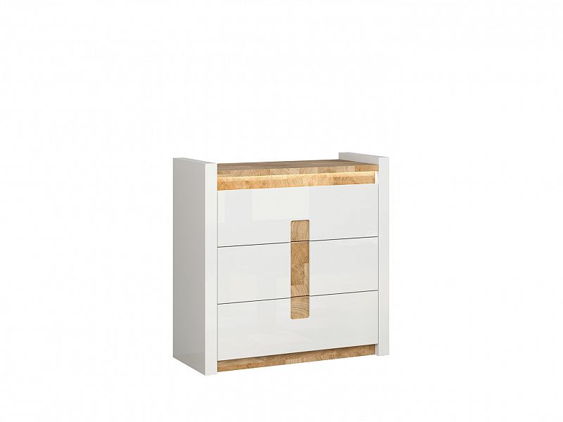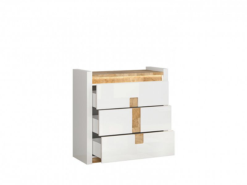 Součástí komody je Led osvětlení a panty s tichým dovíráním.