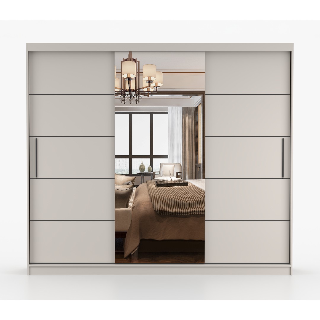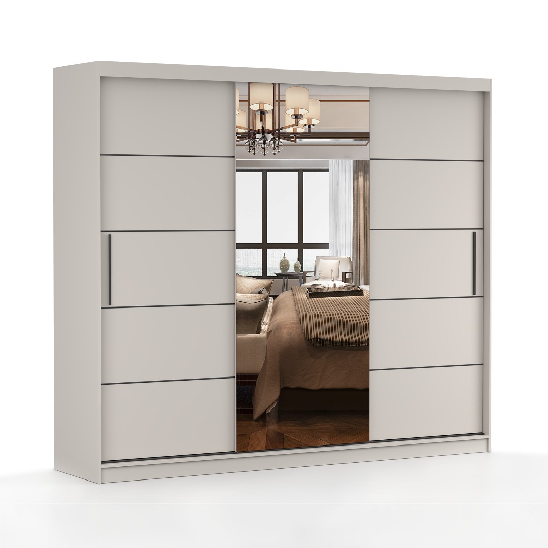 Je vyrobena z laminovaných desek, které jsou nenáročné na údržbu. Dvířka skříně jsou posuvná, na prostředních je k dispozici zrcadlo, díky kterému se opticky zvětší a projasní místnost. Barevné provedení skříně Albatros je v tónu kašmír. Tyto barvy jsou příjemné a jednoduše se zakomponují k již stávajícímu nábytku v místnosti. Úchytky jsou vyrobeny z PVC. Úložný prostor je v podobě šatní tyče a polic, pro lepší přehled v ukládaných věcech.