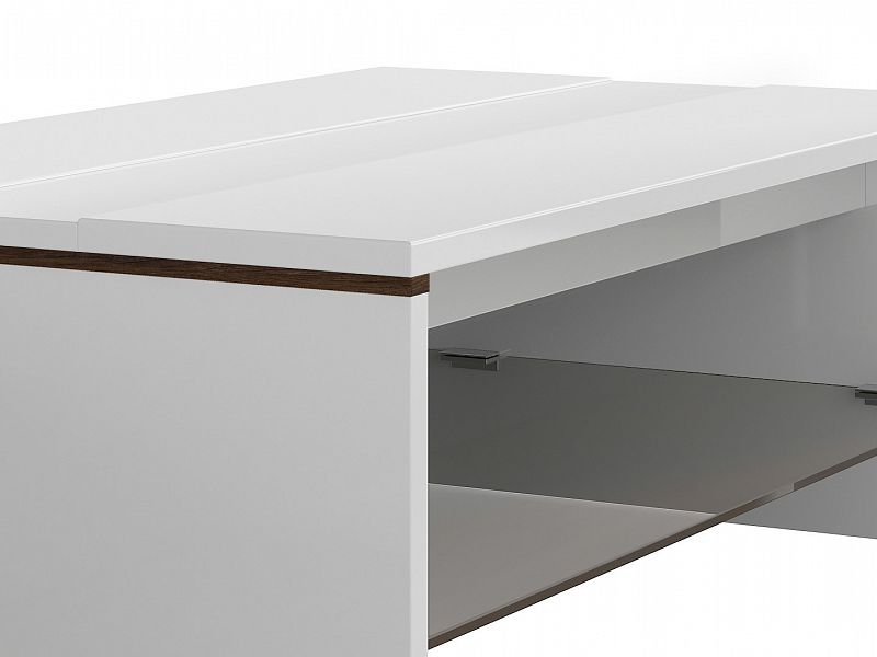 Pro zvýšení odolnosti proti poškození a poškrábaní je vrchní deska stolu pokryta lakem. Stolek obsahuje praktickou skleněnou polici, která zvětšuje odkládací prostor stolku.