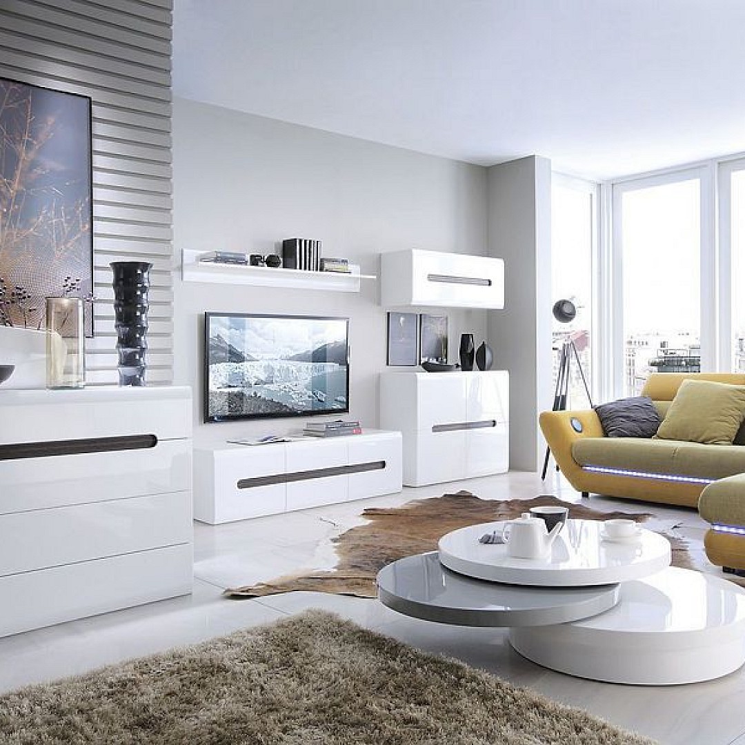 Police na stěnu Azteca Trio (P/2/11) je v barevném provedení: svislá část je v bílém lesku, samotná polička je v bílé barvě.