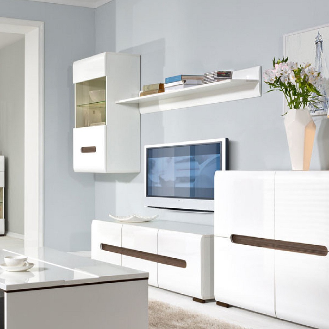 Moderní a elegantní - to je nábytek z kolekce AZTECA. Barevné provedení bílá s čelními plochami v bílém lesku působí velmi čistě a lehce. Jedinečnost nábytku AZTECA TRIO dodávají originálně provedené úchyty a zaoblené hrany dvířek s lištami ve 3 barvách. Pomocí tohoto nábytku vytvoříte velice moderní obývací pokoj, či ložnici.