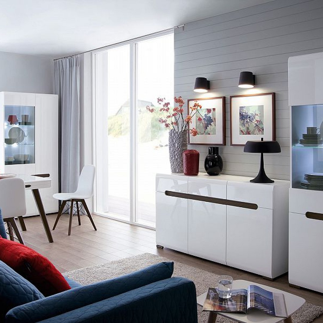 Obývák, ve kterém se nebudete stydět nikoho pohostit. Elegantní a čisté prostředí docílíte provedením vitríny bílé v lesku. Vitrína s LED osvícením Azteca Trio promění váš obývací pokoj v místnost plnou luxusu a stylu...