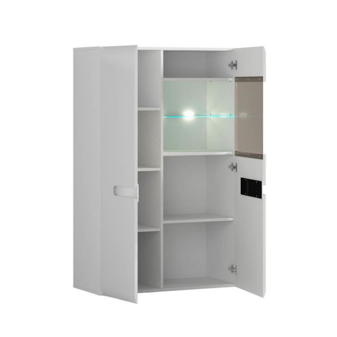 Lesklé bílé provedení působí moderně, opticky zvětšuje prostor a snadno se kombinuje s dalším nábytkem z kolekce Azteca Trio. Vitrína se tak stane nejen funkčním úložným řešením, ale i stylovým prvkem vašeho interiéru. Její úložný prostor je v podobě polic uschovaných za dvířky.