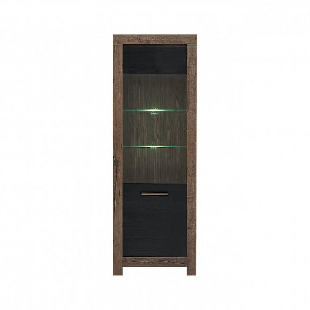 Je navržena v barevném provedení dub monastery/dub černý. Nábytek této obývací stěny vám umožní umístit do prostoru veškeré potřebné doplňky. Díky úložnému prostoru televizního stolku uspořádáte nejen časopisy či ovladače, ale do poliček můžete zakomponovat DVD přehrávač či herní konzoly. Vitríny se skleněným průhledem umožní vystavit dekorační předměty, na které bude vidět, ale přitom se na ně nebude prášit. Vystavené dekorace krásně zvýrazní LED osvětlení sklenených poliček, které je součástí vitrín.