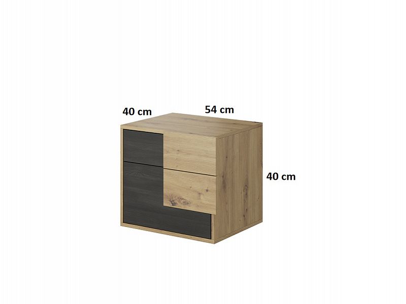 Noční stolek Bergamo BA23 je zhotoven z kvalitního lamina v barevném provedení dub artisan/borovice černá norská. Neodmyslitelně patří k nočnímu stolku také úložný prostor. Například v podobě zásuvky. A ten náš má hned dvě. Noční stolek je univerzální (barevné použití borovice černé vlevo, nebo vpravo ). Viz montážní návod.