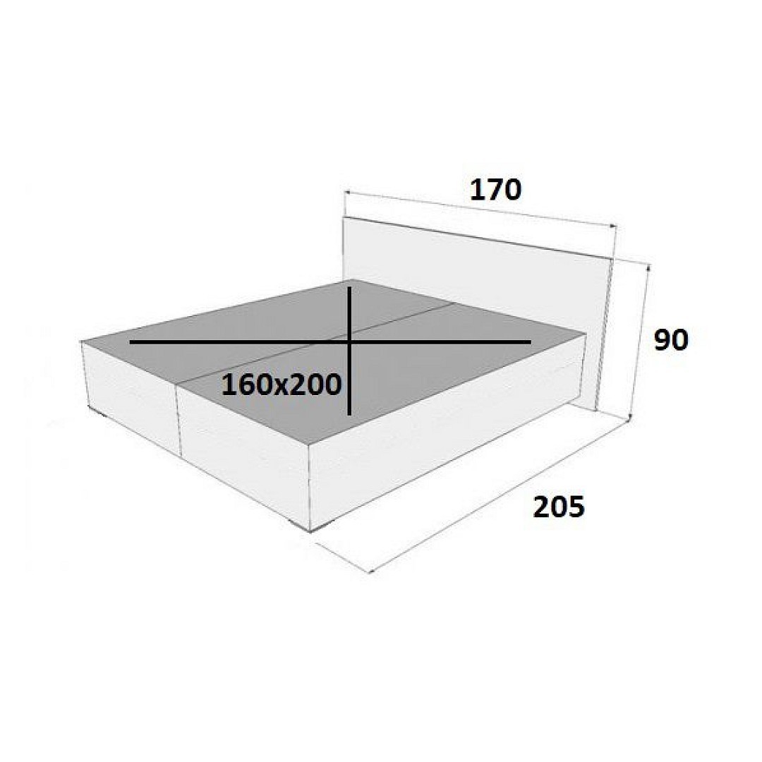 Velikost spací plochy je 160 x 200 cm. Nosnost postele je 2x 100 Kg.