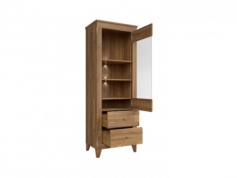 Vitrína Bergen REG1W2S se stane stylovým přírůstkem do vašeho obývacího pokoje. Na 2 policích za prosklenými dvířky můžete vystavit knihy, sbírky, dekorace či suvenýry. Věci běžné denní potřeby můžete přitom uložit do 2 praktických šuplíků...