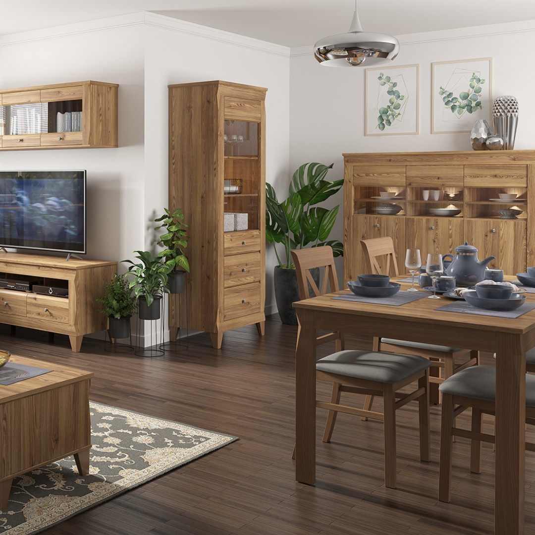 Nábytek z této kolekce skvěle skloubil geometrické tvary, originální detaily a tlumené barvy, díky nimž váš obývací pokoj a ložnice budou vypadat skvěle.