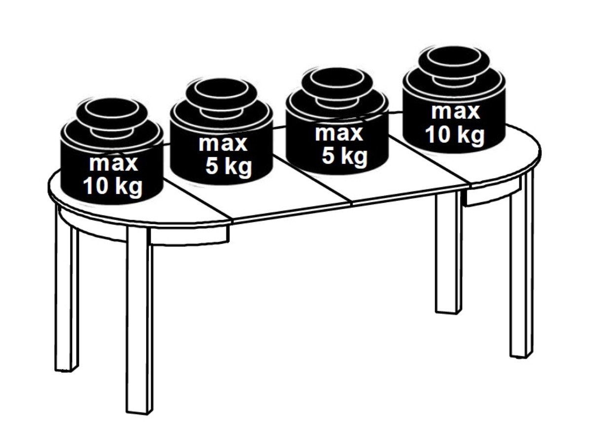 Jídelní stůl je možné kdykoliv dle potřeb rozložit. A to díky 2 praktickým vložkám, které můžete uložit kdekoliv v domě. Délka stolu je tak 195 cm. Průměr stolu bez rozložení je 95 cm.