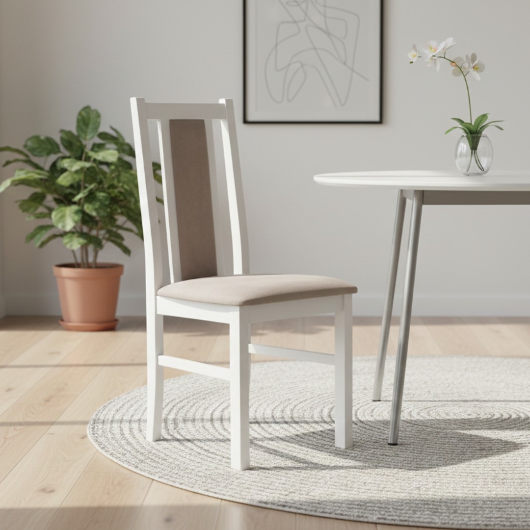 BOSANOVA 14 přichází v nadčasovém bílém provedení, které do interiéru vnáší pocit lehkosti a světla. Tato barva je mezi designéry oblíbená pro svou mimořádnou variabilitu – díky svému neutrálnímu charakteru se židle stane přirozenou součástí moderních, skandinávsky laděných i klasických interiérů. Velmi snadno ji sladíte s již stávajícím nábytkem, ať už preferujete minimalistický styl, nebo útulné bydlení v duchu Provence...