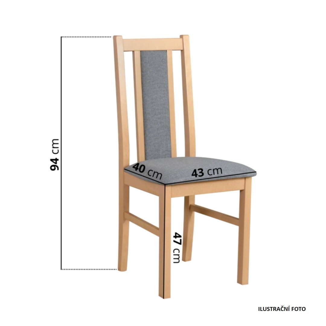 Jídelní židle má dostatečně vysoký a pohodlný opěrák. Sedák je polstrovaný a čalouněný v béžovém tónu látky Paros 02. Zhotoveno z kvalitního masivu. Výška sedu je 47 cm.