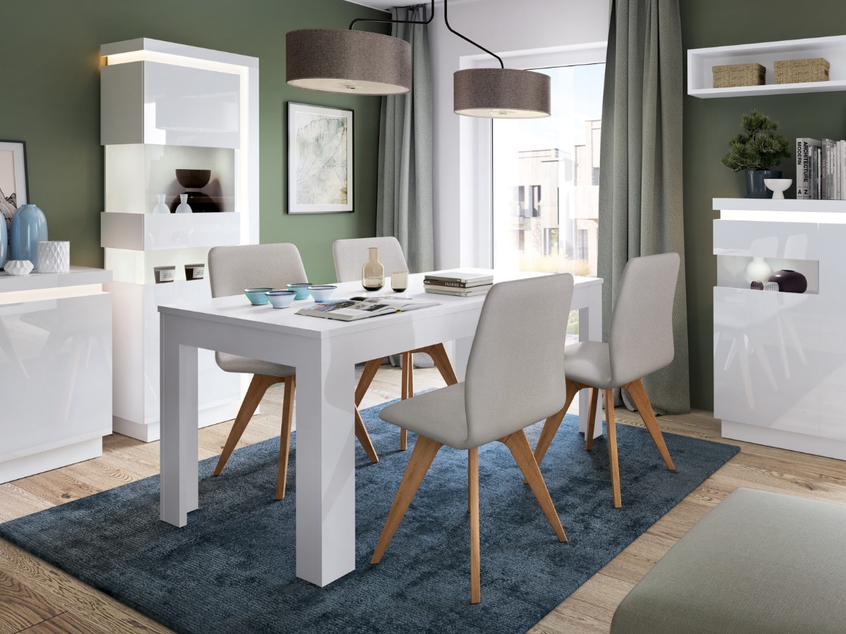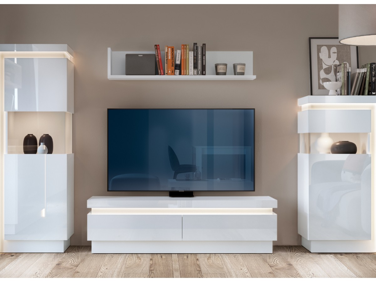 Při výrobě vitríny CANTUS bylo použito vysoce kvalitní laminátové desky. Barevná kombinace je bílá/bílá lesk. Dvířka jsou vybavena systémem tichého dovírání. Přední strana skla je vyrobena z tvrzeného skla Antisol, které je tónované, což zajišťuje dokonalou barvu a chrání před nadměrným slunečním zářením.