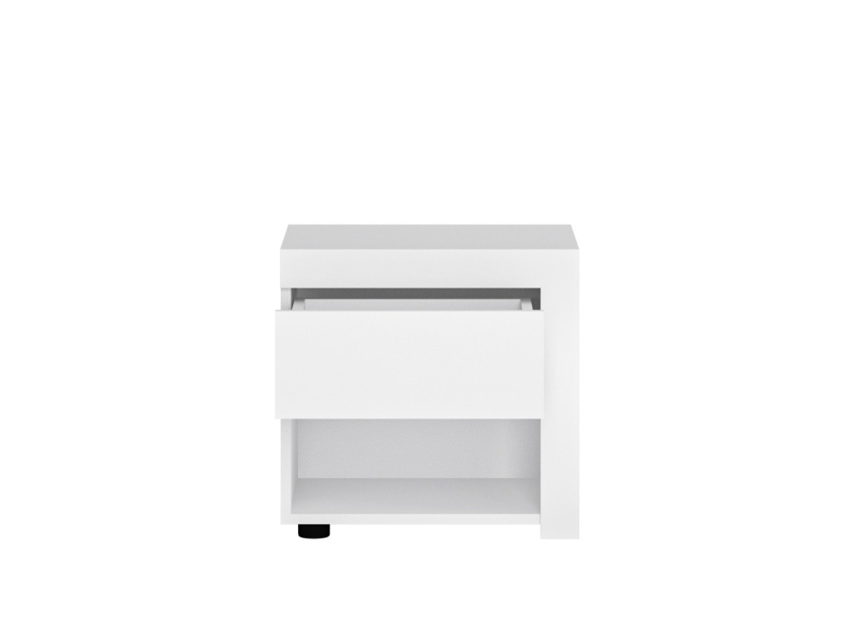 Materiálem, použitým při výrobě tohoto nočního stolku, je vysoce kvalitní lamino. Barevná kombinace bílá/bílý lesk přináší do vašeho prostoru moderní a svěží atmosféru.