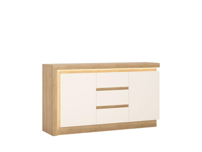 Komoda CANTUS je vyrobena z lamina v barevném provedení dub riviéra světlý/ bílá lesk. Součástí komody jsou police a zásuvky, vše doplněno tichým dovíráním.