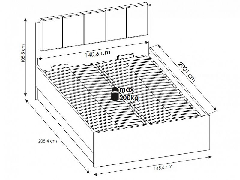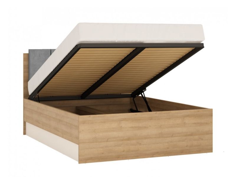 Postel CANTUS 140 je vyrobena z lamina v kombinaci barev dub riviéra světlý/bílá. V ceně je zahrnutý rošt a úložný prostor, který je pod celou postelí a je vhodný pro uschování lůžkovin.