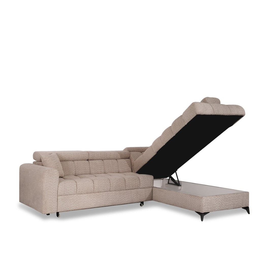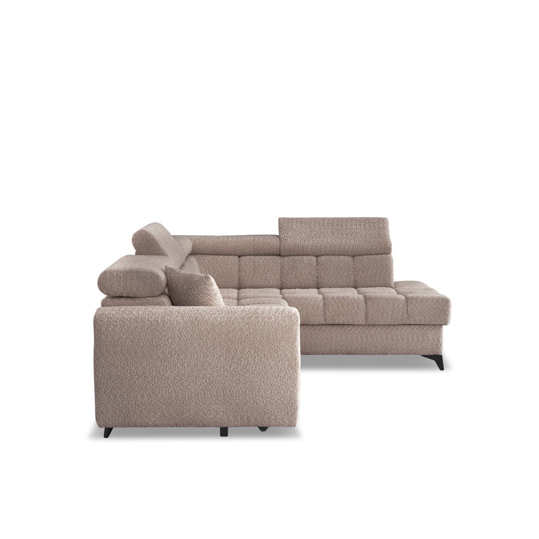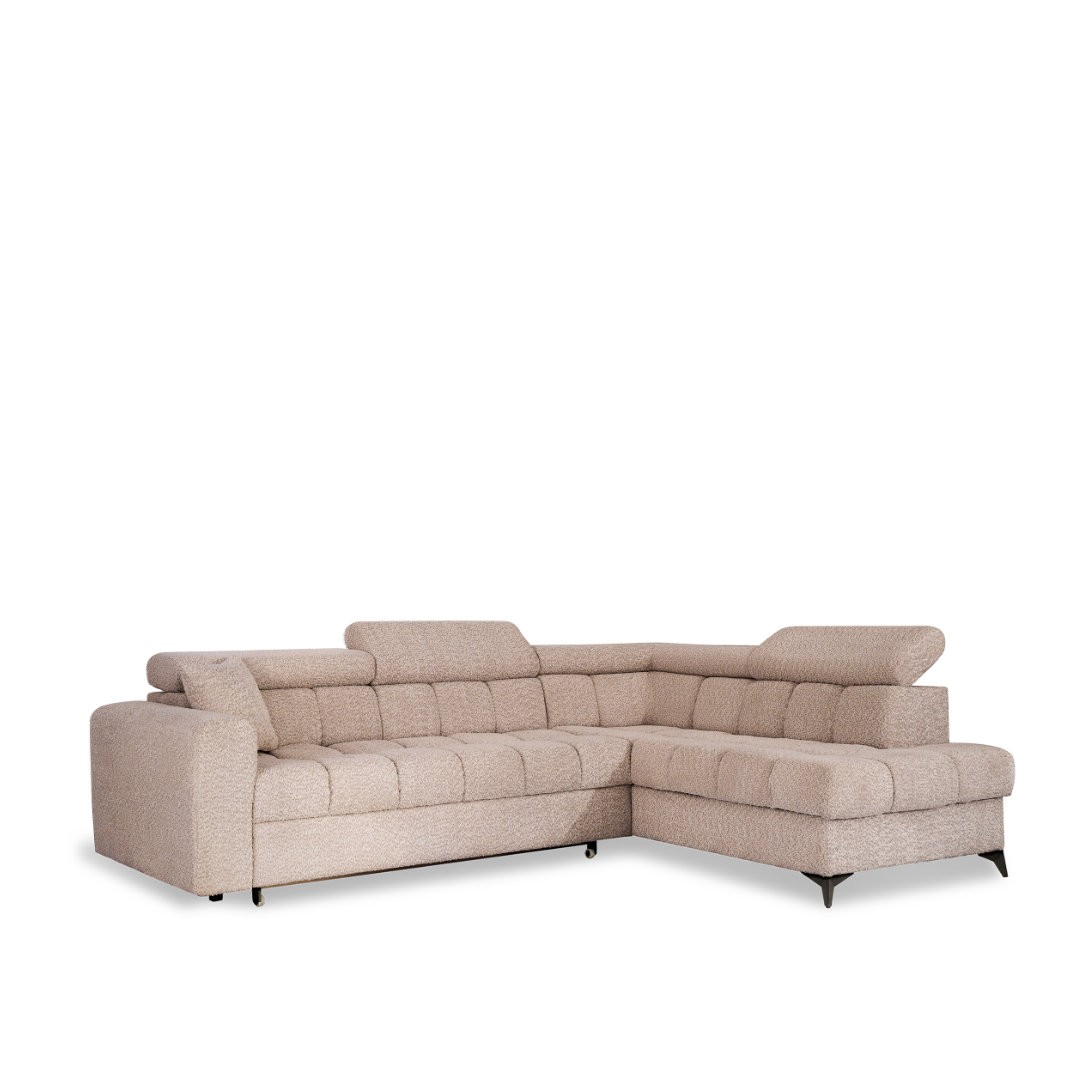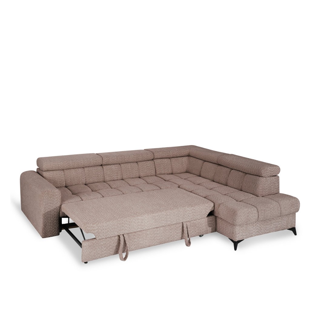 Zapomeňte na obtížné vstávání. S extra vysokým sedákem (49 cm) nabízí CARACAS špičkovou ergonomii, kterou oceníte každý den. Souprava je vybavena 3 polohovacími záhlavníky, které si nastavíte přesně podle svých potřeb – ideální pro sledování filmu nebo čtení knihy. Elegantní kovové nožky o výšce 10 cm dodávají pohovce moderní vzdušný vzhled a navíc usnadňují úklid (pod sedačku se snadno vejde většina robotických vysavačů). Tkanina Marcello 4 ve světle hnědém tónu je nejen vizuálně atraktivní, ale také vytváří hřejivou atmosféru domova. Caracas proměníte během pár vteřin v prostorné lůžko díky intuitivnímu rozkladu typu Delfin. Získáte tak velkorysou spací plochu o rozměrech 127 × 202 cm.