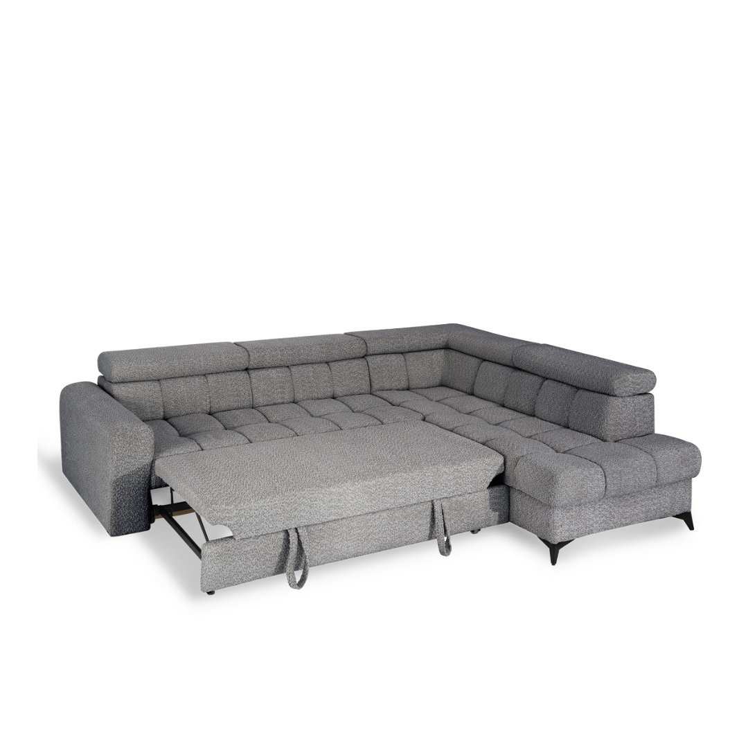 Zapomeňte na obtížné vstávání. S extra vysokým sedákem (49 cm) nabízí CARACAS špičkovou ergonomii, kterou oceníte každý den. Souprava je vybavena 3 polohovacími záhlavníky, které si nastavíte přesně podle svých potřeb – ideální pro sledování filmu nebo čtení knihy. Elegantní kovové nožky o výšce 10 cm dodávají pohovce moderní vzdušný vzhled a navíc usnadňují úklid (pod sedačku se snadno vejde většina robotických vysavačů). Tkanina Miscanto 40 ve světle šedém tónu je nejen vizuálně atraktivní, ale také vytváří hřejivou atmosféru domova. Caracas proměníte během pár vteřin v prostorné lůžko díky intuitivnímu rozkladu typu Delfin. Získáte tak velkorysou spací plochu o rozměrech 127 × 202 cm.