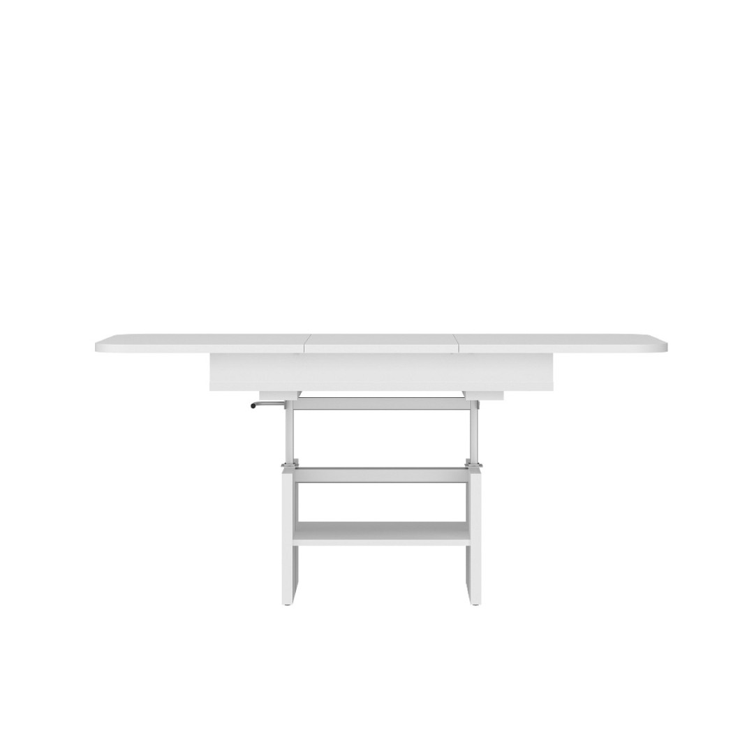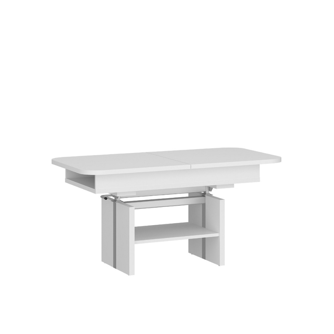 Předností stolku je jeho funkce rozložení. Vznikne vám tak prostorná plocha až 150 cm. Navíc je možné vyzvednout stolek do výšky, díky čemuž se během chvíle stane z konferenčního stolku plnohodnotný jídelní stůl s výškou 72 cm. Zvedání je snadné díky klice, která je součástí tohoto stolu. Odkládací deska je vhodná pro umístění novin a časopisů.