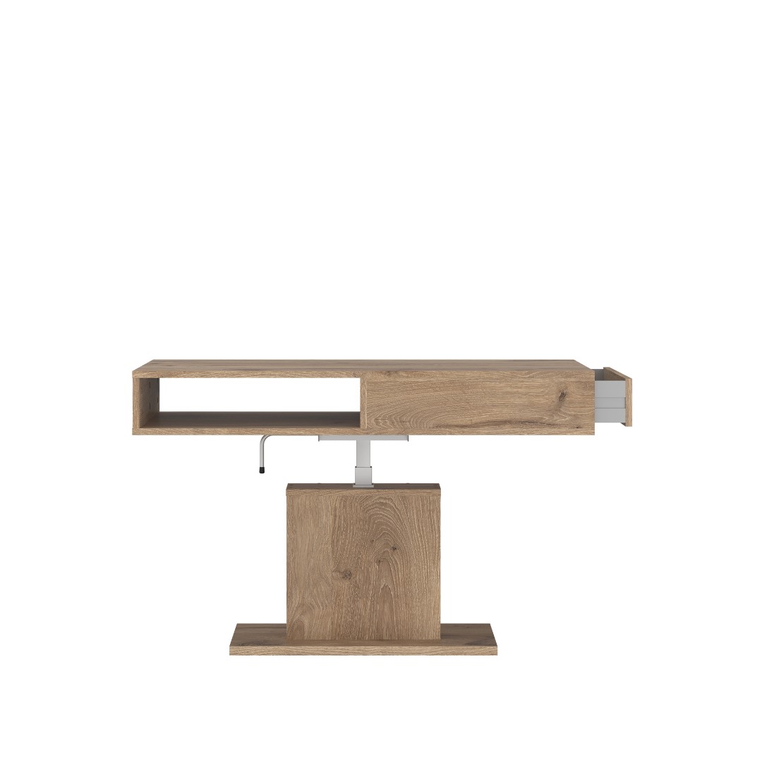 Jednou z hlavních předností stolku je možnost snadného vyzvednutí pracovní plochy do výše jídelního stolu. Vyzvednutí je komfortní díky klice. Odkládací deska poskytuje vhodný prostor pro noviny a časopisy. Šuplík ve vrchní desce je vhodný pro uložení různých drobností. Výška stolu je 59,6 - 79,6 cm.