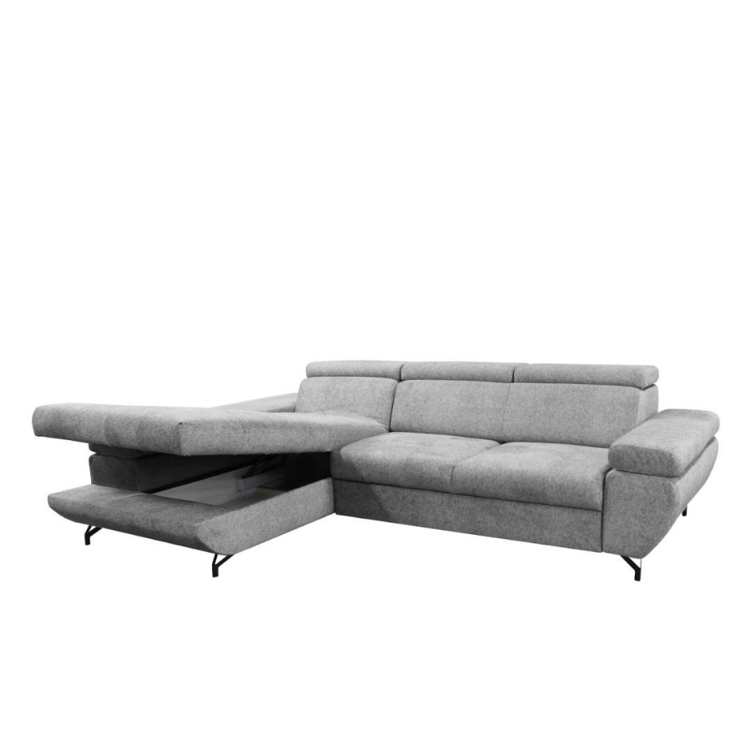 Pohodlí zajistí 2x polohovací područka. Područku otomanu můžete zvednout a zajistit si tak pohodlný prostor o opření zad. Vznikne zádová opěrka. Dále 3x polohovací záhlavník. Výška sedačky je tak v rozmezí 77-100 cm. Možnost rozložení má dostatečně velikou spací plochu o rozměrech 120x200 cm. Rozklad čalouněný totožnou látkou, jako zbytek sedačky. Úložný prostor se nachází v otomanu, vhodný pro uschování sezónních věcí, nebo lůžkovin.
