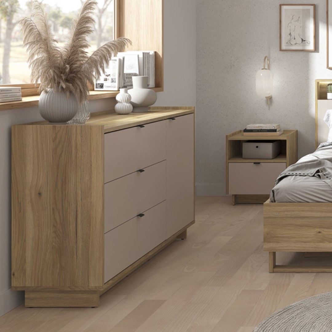 Kolekce DALVA v kašmírovém odstínu spojuje přírodní eleganci s moderním designem a nabízí stylové řešení úložného prostoru pro ložnici.
