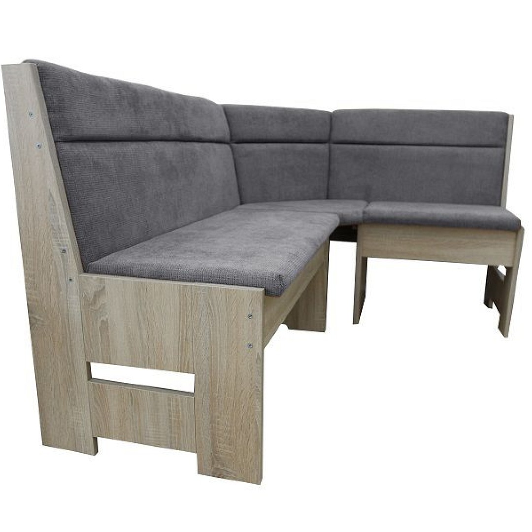 Denis zaujme na první pohled nejen svým jednoduchým tvarem, ale také svou prostorností. Budete tak mít dostatek místa k sezení pro celou vaši rodinu. Lavice je vyrobena z kvalitních materiálů - lamina, které se snadno udržuje. Korpus je v barvě dub sonoma, čalounění je v šedé látce PW 14. Na očalounění této rohové lavice jsou použity kvalitní a pevné látky.