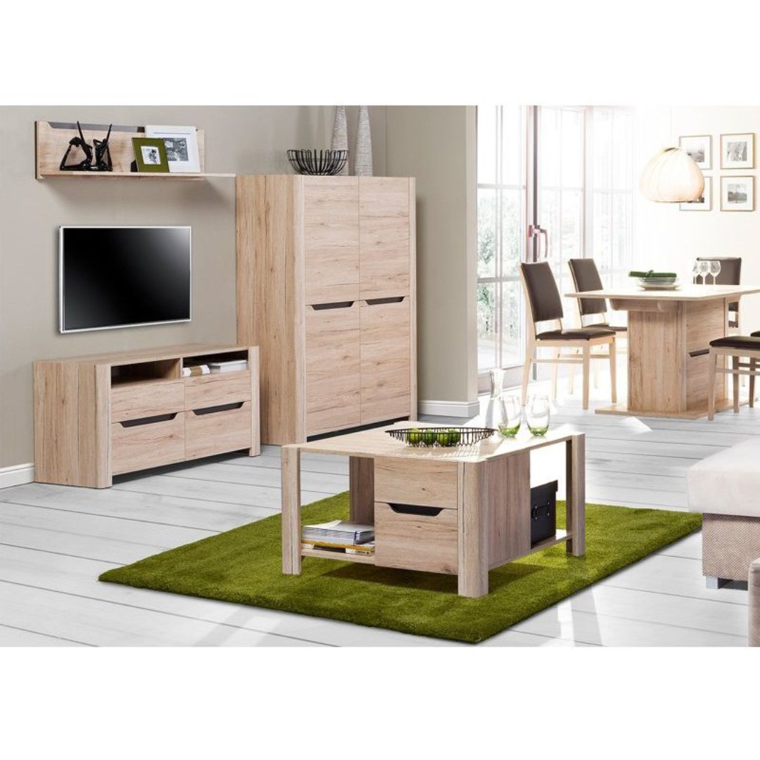 Konferenční stolek se 2 zásuvkami ze sektorové řady umocňuje senzační bezúchytkový systém nábytku. Dekor s 3D efektem vizuálně dává dojem hlubokého povrchu.