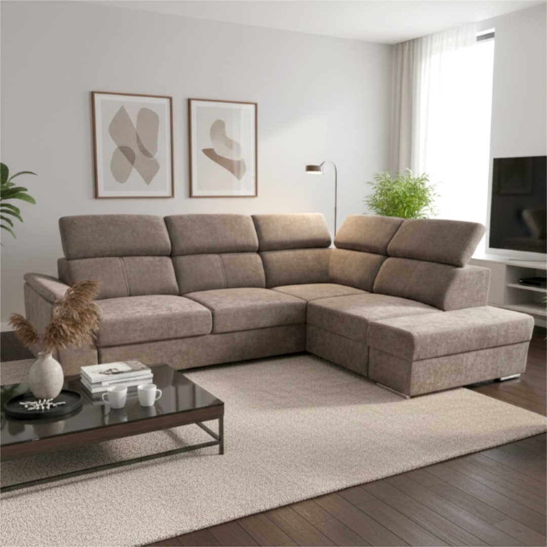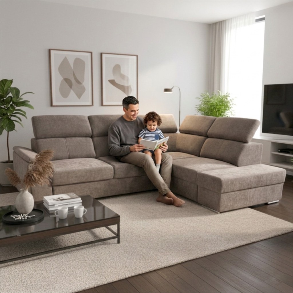 DOMINO je v teplém hnědém tónu látky Wind 21. Jde o látku typu pet friendly - snadno se čistí od chlupů i srsti, což ocení každý majitel domácích mazlíčků. Zapadne do moderního i klasicky laděného interiéru. Díky svému praktickému tvaru do L navíc snadno zapadne do prostoru. Pohodlí přispějí také polohovací opěrky hlavy kdy je výška sedačky 79/97cm. Umožňuje tak individuální nastavení podpory hlavy a krku – ať už relaxujete nebo sledujete váš oblíbený film. Rozkládací mechanismus typu Delfin přemění snadno sedačku na pohodlné dočasné lůžko pro hosty. Nesmíme opomenout ani úložný prostor v podobě výsuvného šuplíku, do kterého je snadný přístup. Pojme tak lůžkoviny a jiné nezbytnosti, jež nechcete mít na očích.