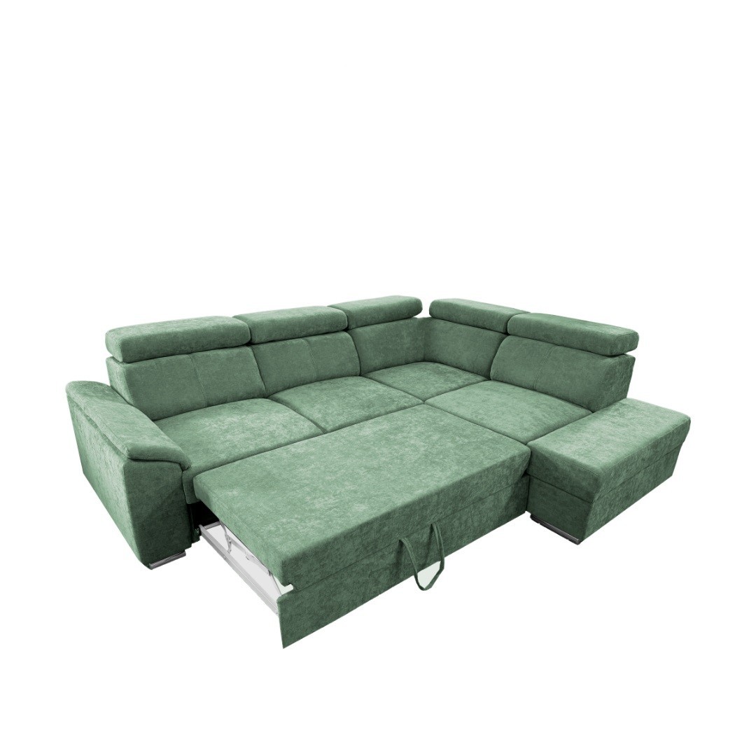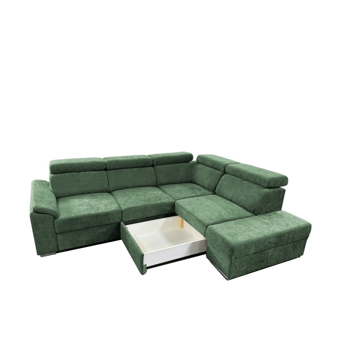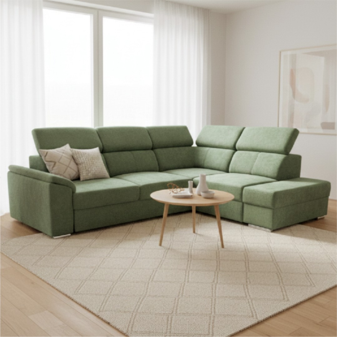 DOMINO je v olivovém tónu látky Wind 34. Jde o látku typu pet friendly - snadno se čistí od chlupů i srsti, což ocení každý majitel domácích mazlíčků. Zapadne do moderního i klasicky laděného interiéru. Díky svému praktickému tvaru do L navíc snadno zapadne do prostoru. Pohodlí přispějí také polohovací opěrky hlavy kdy je výška sedačky 79/97cm. Umožňuje tak individuální nastavení podpory hlavy a krku – ať už relaxujete nebo sledujete váš oblíbený film. Rozkládací mechanismus typu Delfin přemění snadno sedačku na pohodlné dočasné lůžko pro hosty. Nesmíme opomenout ani úložný prostor v podobě výsuvného šuplíku, do kterého je snadný přístup. Pojme tak lůžkoviny a jiné nezbytnosti, jež nechcete mít na očích.