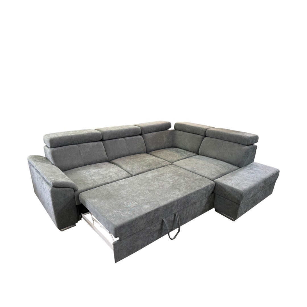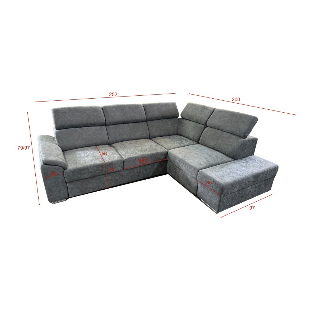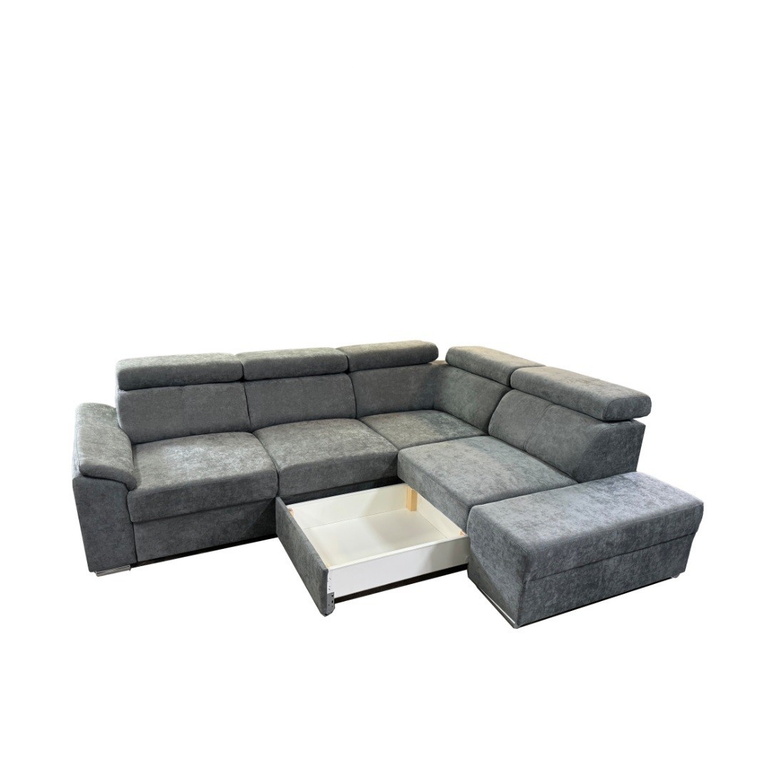 DOMINO je v šedém tónu látky Wind 89. Jde o látku typu pet friendly - snadno se čistí od chlupů i srsti, což ocení každý majitel domácích mazlíčků. Zapadne do moderního i klasicky laděného interiéru. Díky svému praktickému tvaru do L navíc snadno zapadne do prostoru. Pohodlí přispějí také polohovací opěrky hlavy kdy je výška sedačky 79/97cm. Umožňuje tak individuální nastavení podpory hlavy a krku – ať už relaxujete nebo sledujete váš oblíbený film. Rozkládací mechanismus typu Delfin přemění snadno sedačku na pohodlné dočasné lůžko pro hosty. Nesmíme opomenout ani úložný prostor v podobě výsuvného šuplíku, do kterého je snadný přístup. Pojme tak lůžkoviny a jiné nezbytnosti, jež nechcete mít na očích.