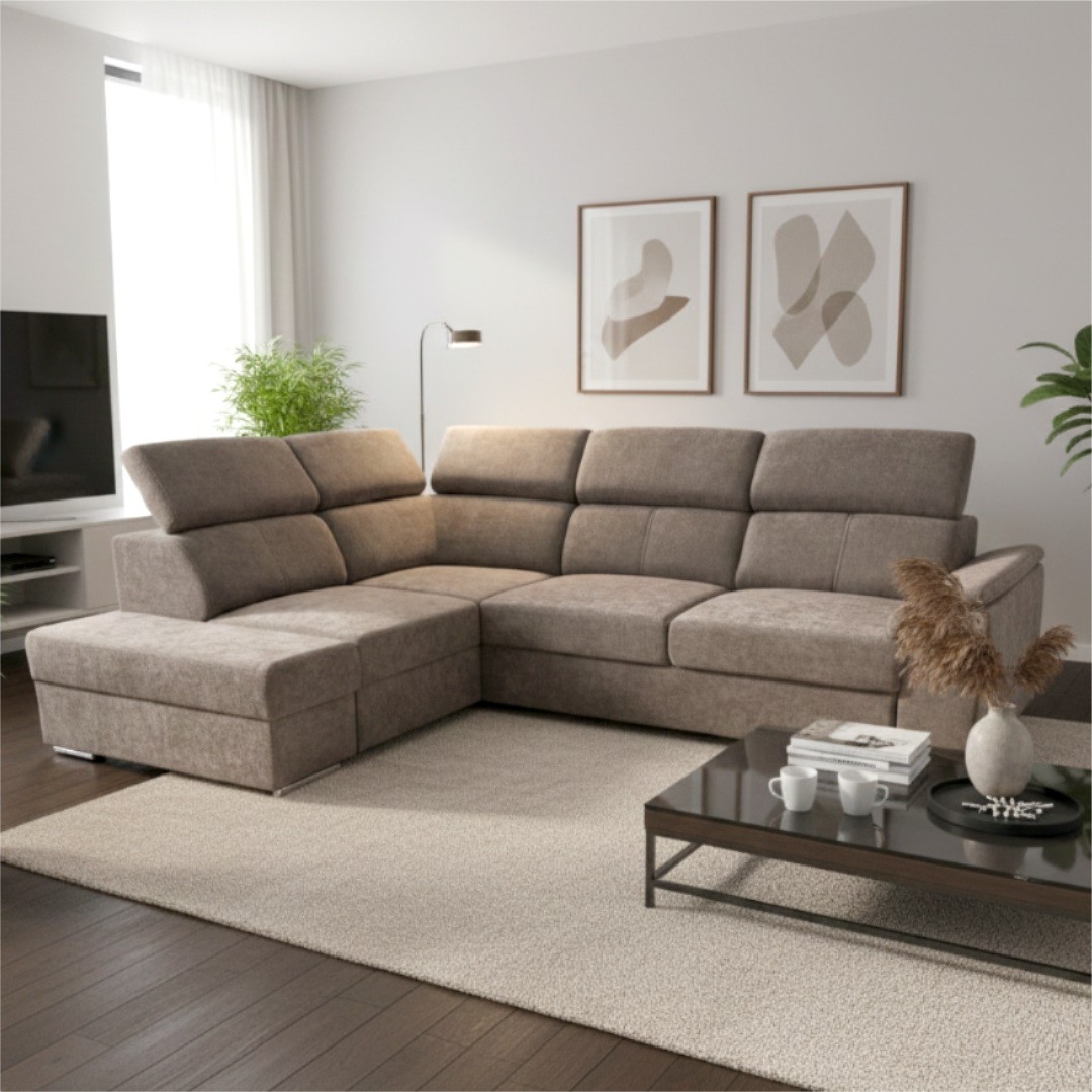 DOMINO je v teplém hnědém tónu látky Wind 21. Jde o látku typu pet friendly - snadno se čistí od chlupů i srsti, což ocení každý majitel domácích mazlíčků. Zapadne do moderního i klasicky laděného interiéru. Díky svému praktickému tvaru do L navíc snadno zapadne do prostoru. Pohodlí přispějí také polohovací opěrky hlavy kdy je výška sedačky 79/97cm. Umožňuje tak individuální nastavení podpory hlavy a krku – ať už relaxujete nebo sledujete váš oblíbený film. Rozkládací mechanismus typu Delfin přemění snadno sedačku na pohodlné dočasné lůžko pro hosty. Nesmíme opomenout ani úložný prostor v podobě výsuvného šuplíku, do kterého je snadný přístup. Pojme tak lůžkoviny a jiné nezbytnosti, jež nechcete mít na očích.