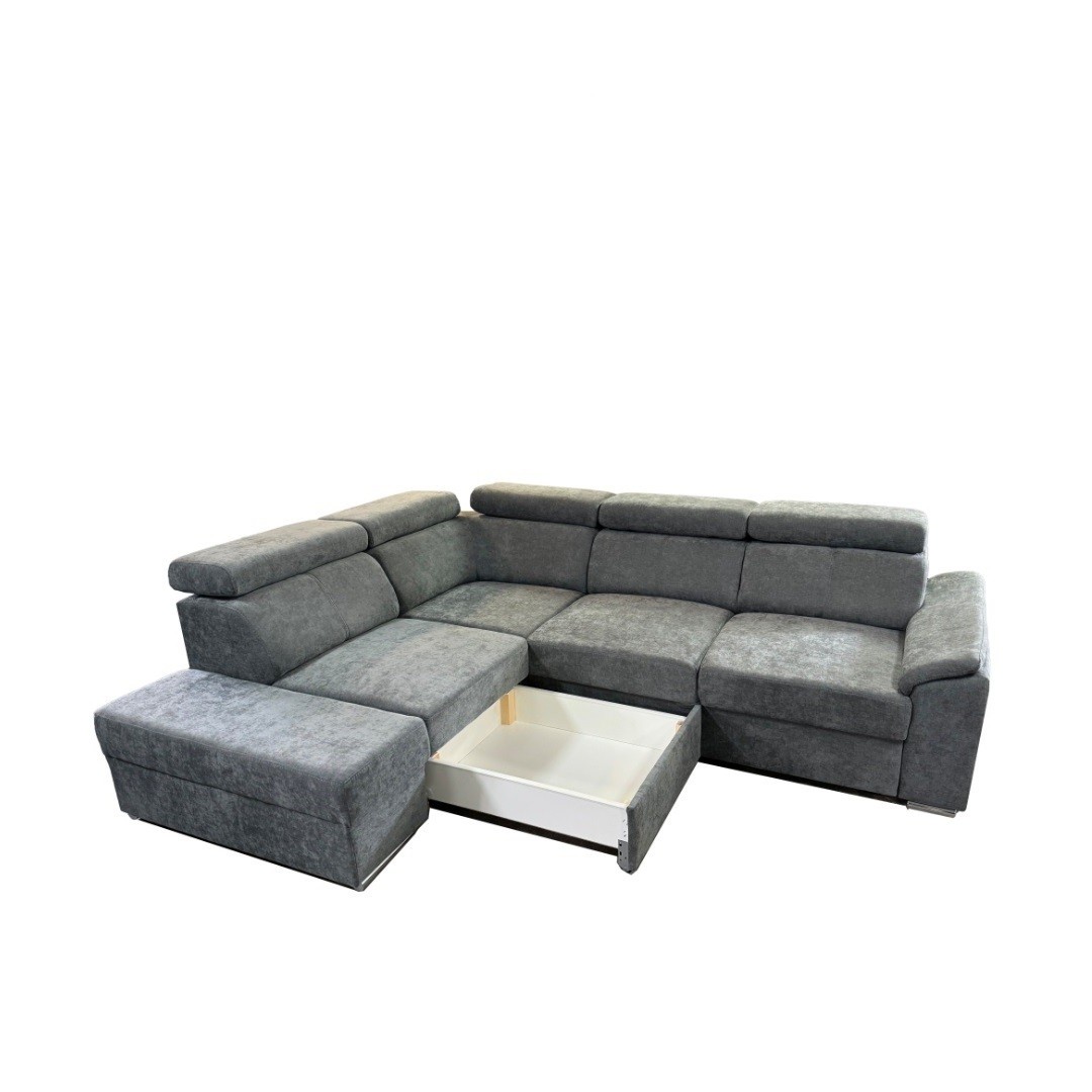 DOMINO je v šedém tónu látky Wind 89. Jde o látku typu pet friendly - snadno se čistí od chlupů i srsti, což ocení každý majitel domácích mazlíčků. Zapadne do moderního i klasicky laděného interiéru. Díky svému praktickému tvaru do L navíc snadno zapadne do prostoru. Pohodlí přispějí také polohovací opěrky hlavy kdy je výška sedačky 79/97cm. Umožňuje tak individuální nastavení podpory hlavy a krku – ať už relaxujete nebo sledujete váš oblíbený film. Rozkládací mechanismus typu Delfin přemění snadno sedačku na pohodlné dočasné lůžko pro hosty. Nesmíme opomenout ani úložný prostor v podobě výsuvného šuplíku, do kterého je snadný přístup. Pojme tak lůžkoviny a jiné nezbytnosti, jež nechcete mít na očích.