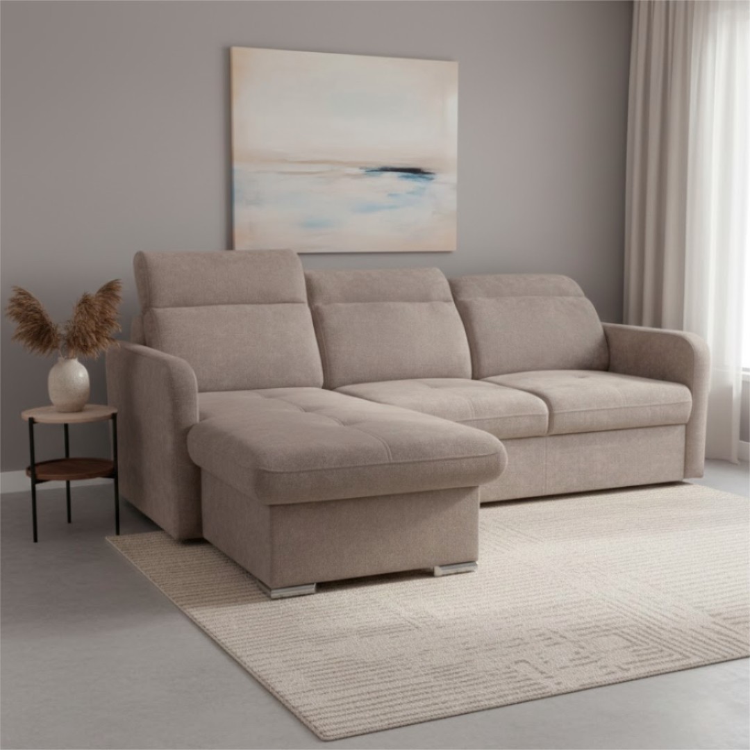 Dozajista vás osloví také barevné provedení, které je ve světle hnědém tónu, jež snadno zapadne do domácnosti. Látka je typu Easy clean - pro snadné čištění vodou (Storm 09).