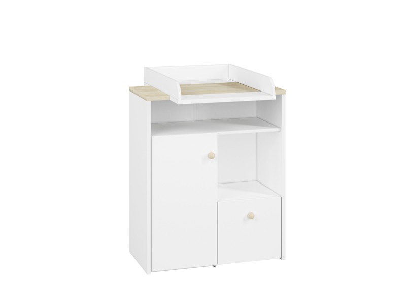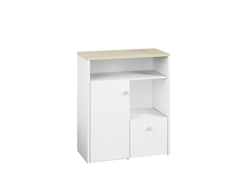 Vyrobena je v barevné kombinaci bílá/buk a to z lamina síly 22 mm + ABS hrany, které se velice snadno udržuje.