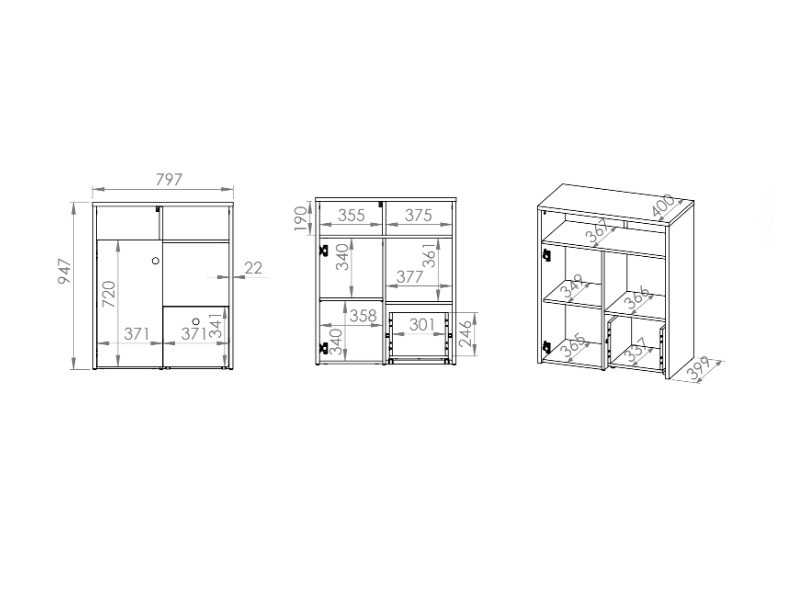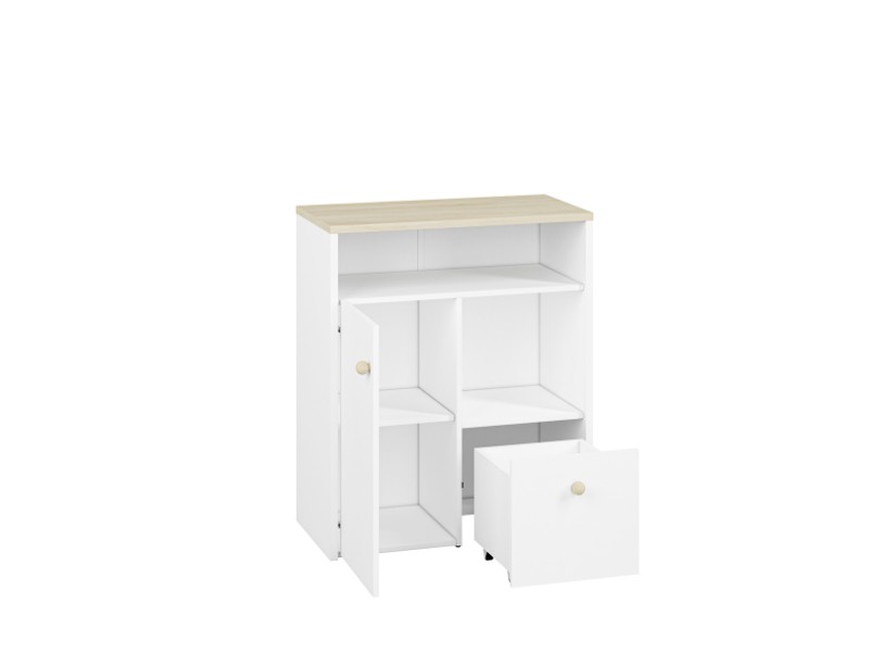 Za dvířky se skrývají police. Ve spodní části je poté k dispozici zásuvka, která zajistí lepší organizování uložených věcí. Navíc má zásuvka možnost plného vysunutí a je možné vyměnit bílá dvířka za jinak barevná viz související zboží.