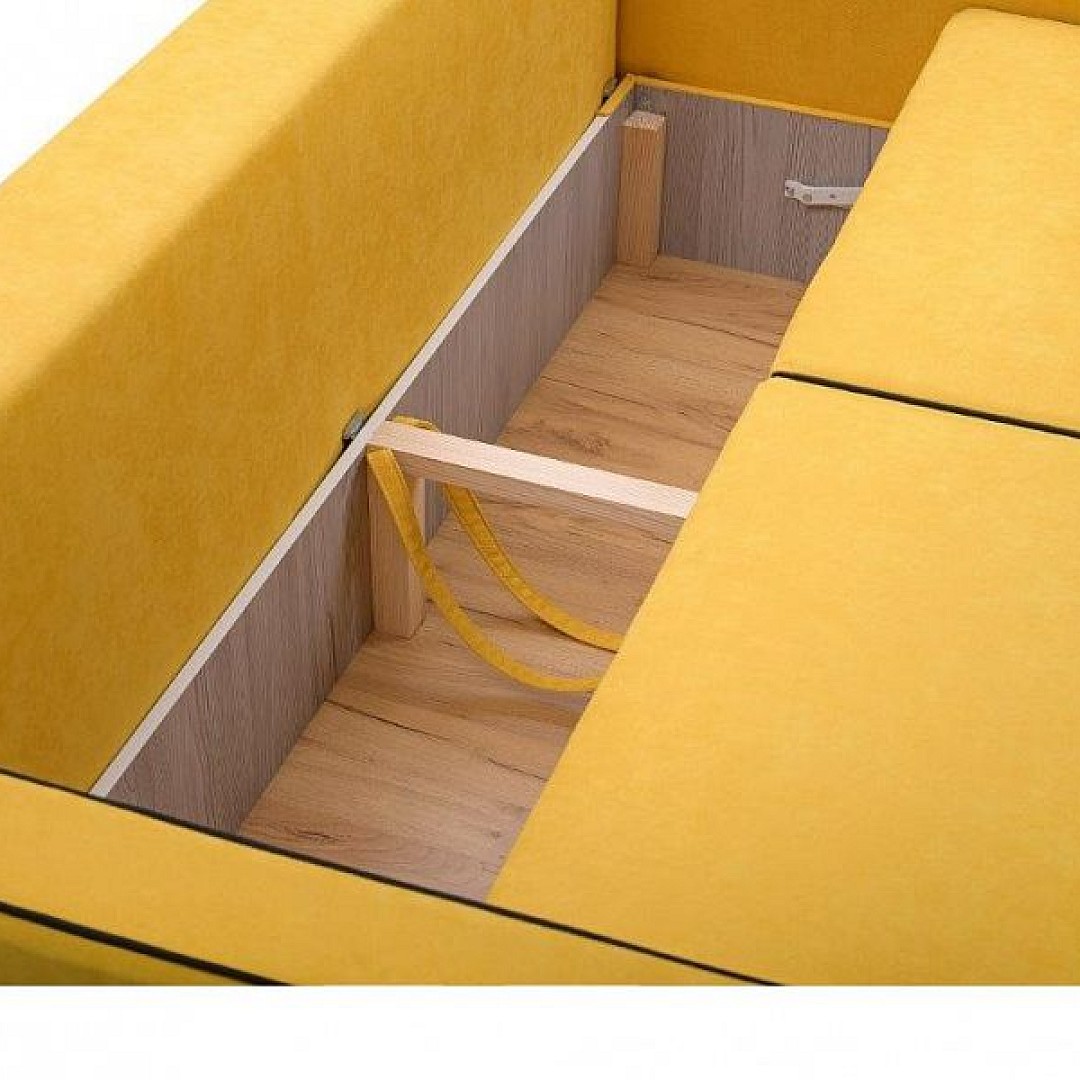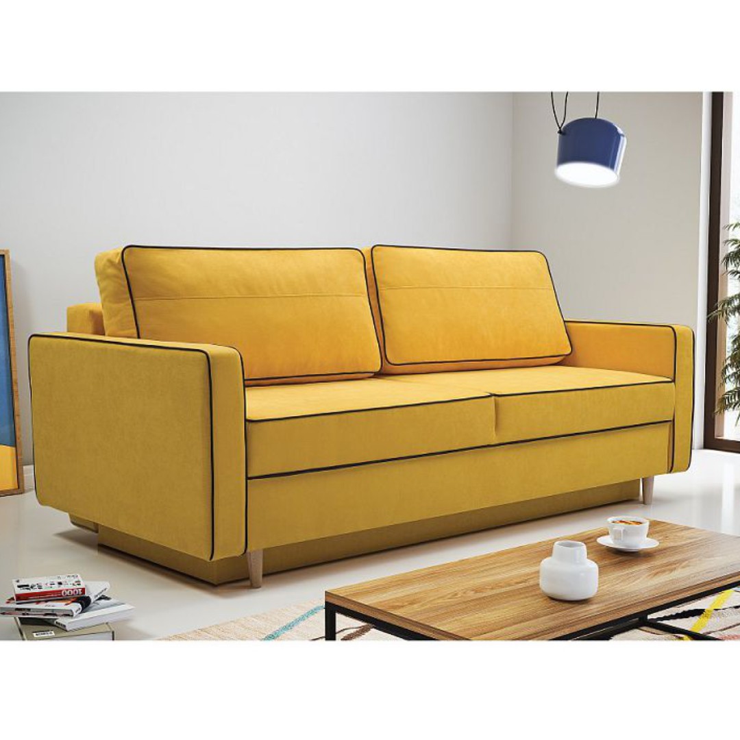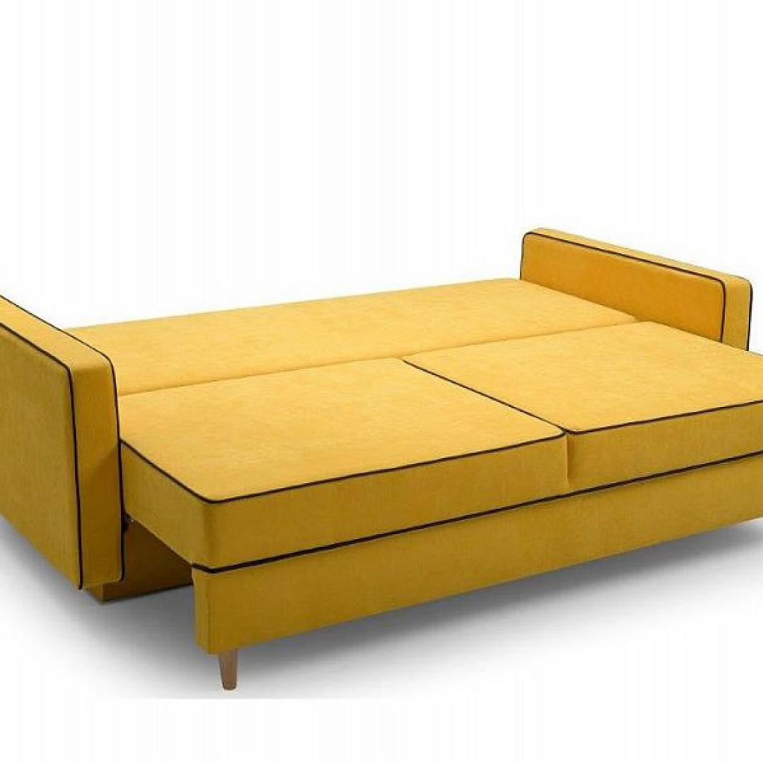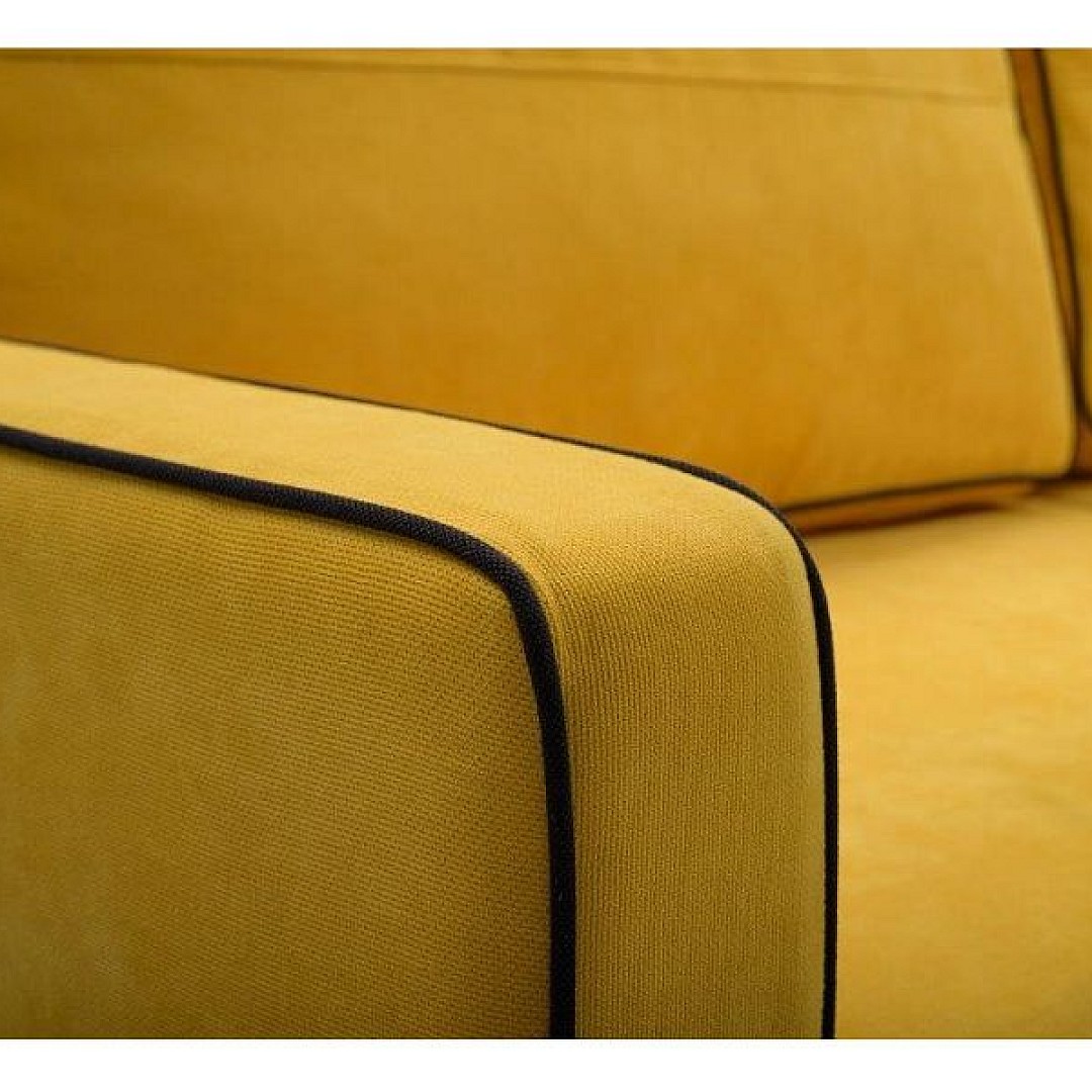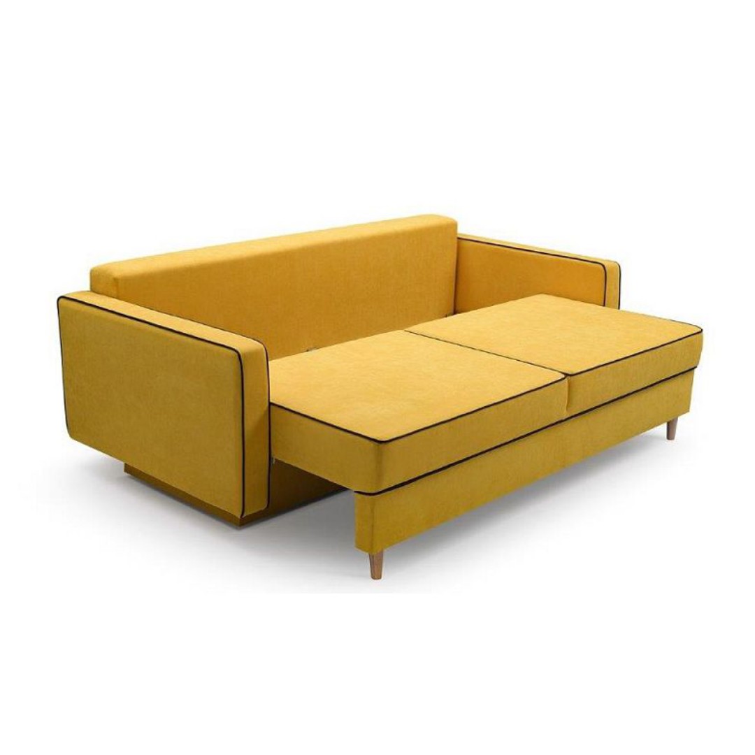 Pohovka je vyplněna pěnou a bonell pružinami. Potažená je v barvě Lincoln 1254 žlutá, paspulka černá.