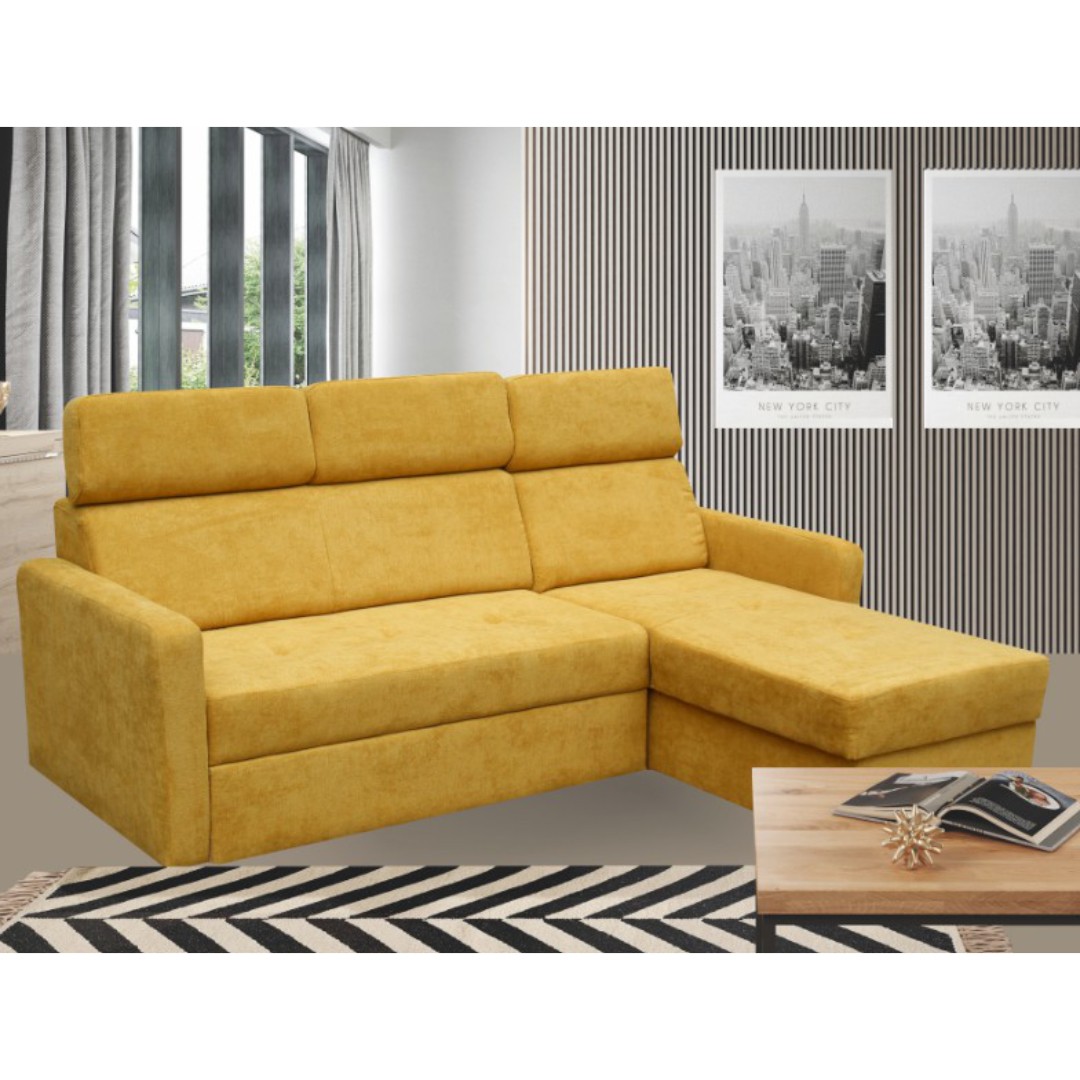 Rohová sedací souprava FONDUE je vyrobená v designové a velice oblíbené hořčicové barvě Alfa 120.