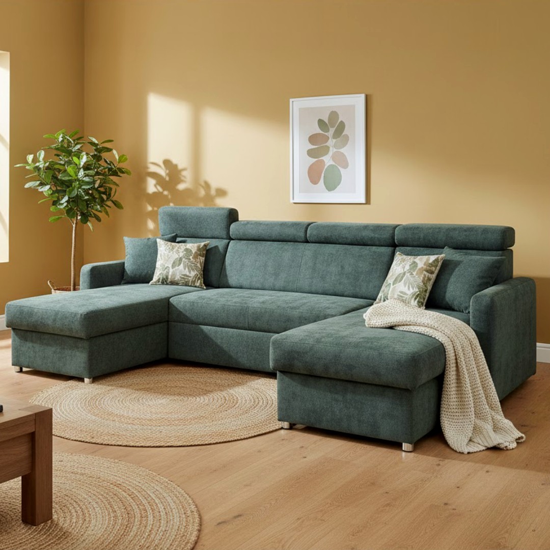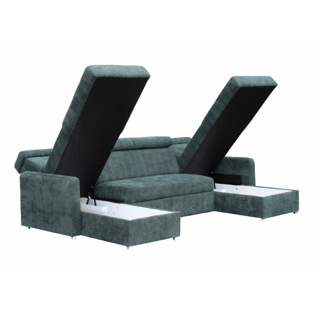 Součástí této sedací soupravy jsou dva úložné prostory nacházející se v otomanu. Nechybí ani možnost rozložení. Velikost spací plochy je o rozměrech 125 x 220 cm. Rozklad je očalouněný v bílé matracovině.