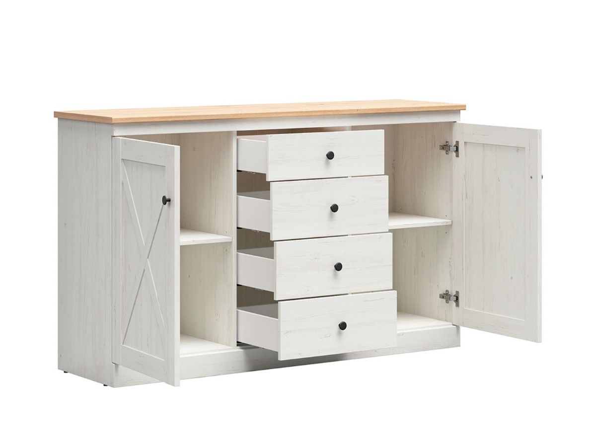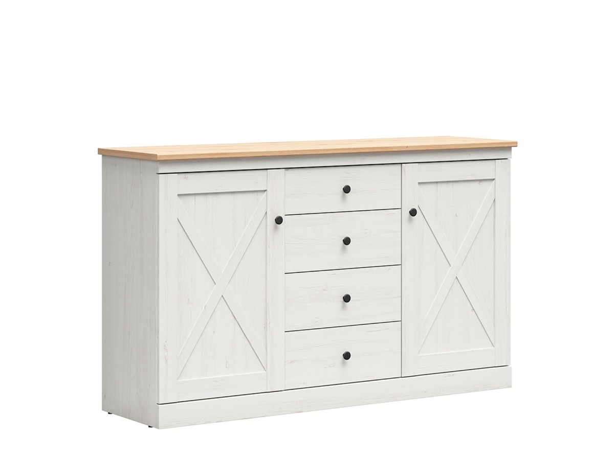 Komoda Frija KOM2D4S je stylovým a funkčním kusem nábytku ve skandinávském stylu, který skvěle doplní interiér vašeho domova. Vyrobena z kvalitního lamina v kombinaci barev borovice bílá Andersen/dub Artisan...