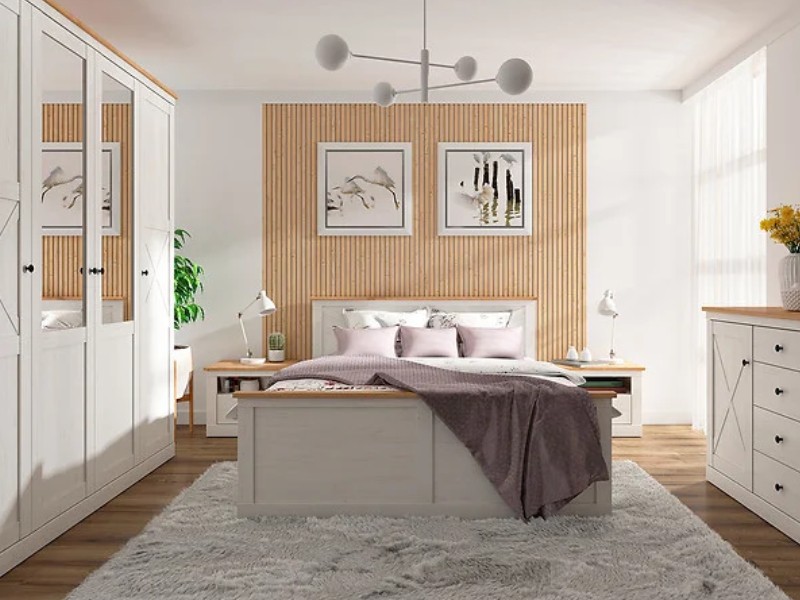 Komoda Frija nabízí praktický úložný prostor, který se skládá z čtyř šuplíků umístěných uprostřed s tichým dovíráním. Tato vlastnost zajišťuje pohodlné a bezproblémové otevírání a zavírání šuplíků. Po stranách komody se nacházejí skříňky s jednou policí, které nabízejí další úložný prostor pro organizaci a uspořádání věcí.