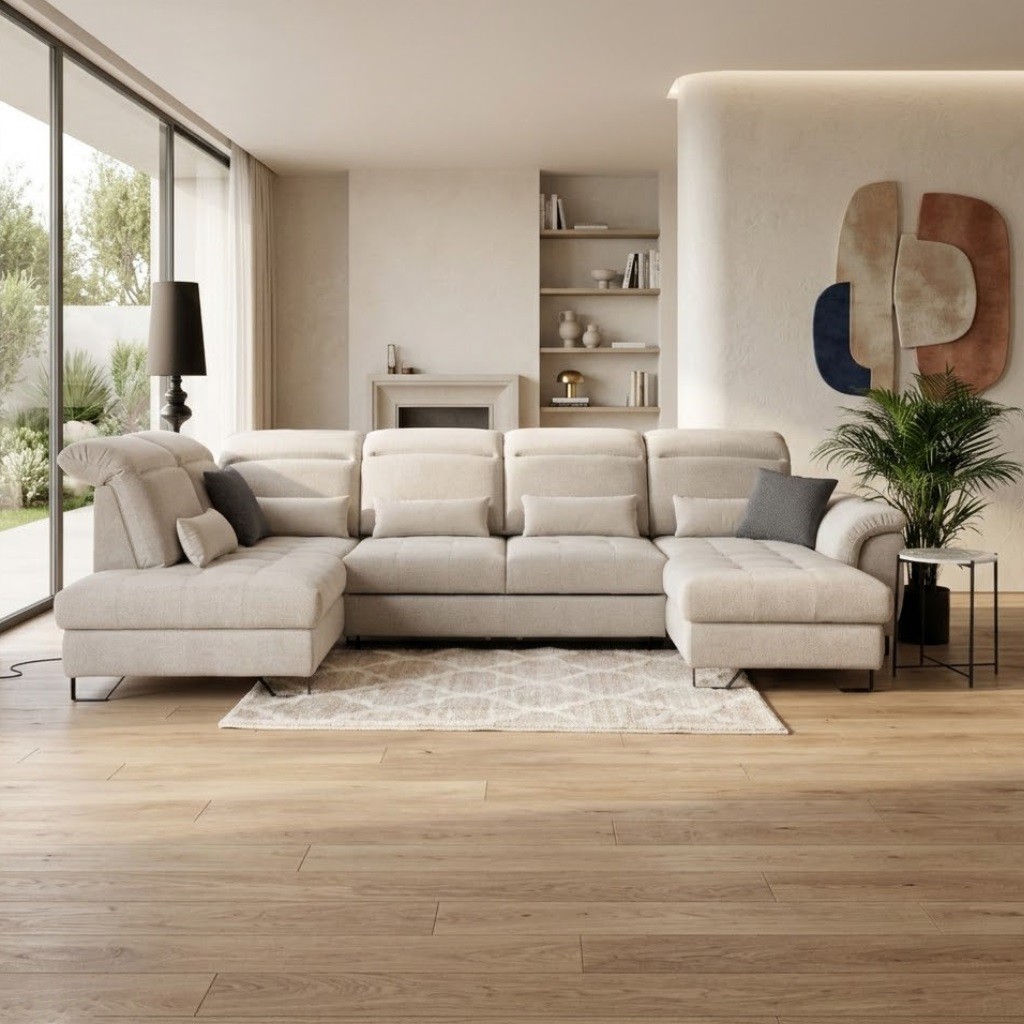 Prostorná a pohodlná je sedací souprava GENEZA do U, která se stane chloubou vašeho obývacího pokoje. Má prvotřídní design a nabízí spoustu vychytávek. Propojuje luxus, funkčnost a špičkový design. Každý detail na nábytku byl pečlivě promyšlen tak, aby poskytl uživateli jen to nejlepší. Rohové provedení je pravé z pozice sedícího...