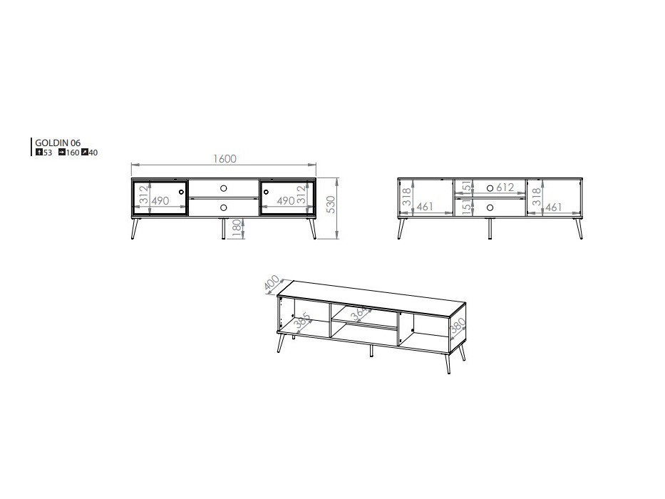 Televizní stolek Goldie 06 bude ozdobou každého trendy obývacího pokoje. Spojení lehkého designu i praktičnosti vytvoří interiér hodný obdivu.