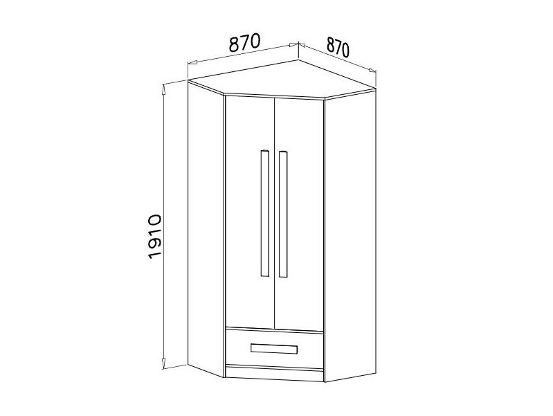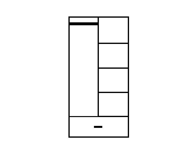 Rohová šatní skříň Goliáš 2 disponuje policovou částí a částí s šatní tyčí. Toto členění je vhodné především k tomu, abyste měli nejen kam umístit veškeré věci, ale i prakticky je roztřídit podle potřeby.