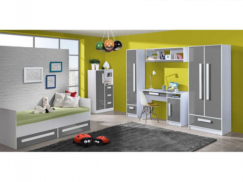 Studentský, dětský pokoj Goliáš je nový systém nábytku pro mládež. Bílé korpusy doplňují další pastelovou barvu. Tento systém má mnoho komponentů z kterého si sestavíte pokoj dle vašich možností a vkusu.