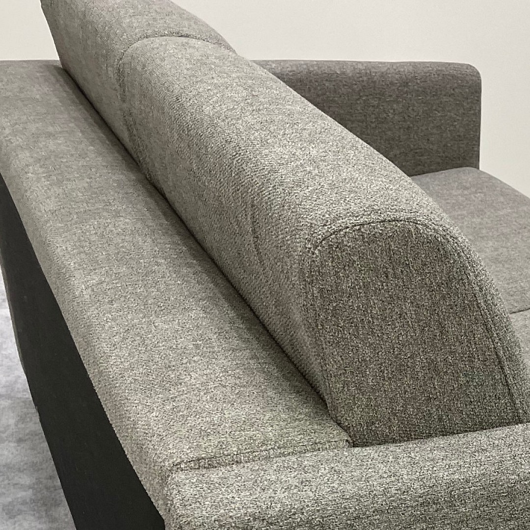 Látka použitá k potažení pohovky Grenada je šedá a navíc je vybavena speciální úpravou Easy Clean, která zajišťuje jednoduché čištění a odolnost vůči vodě. Záda jsou v technické tkanině, není vhodná k umístění do prostoru!