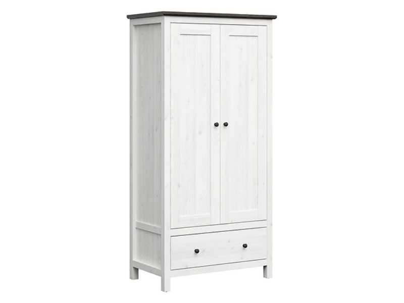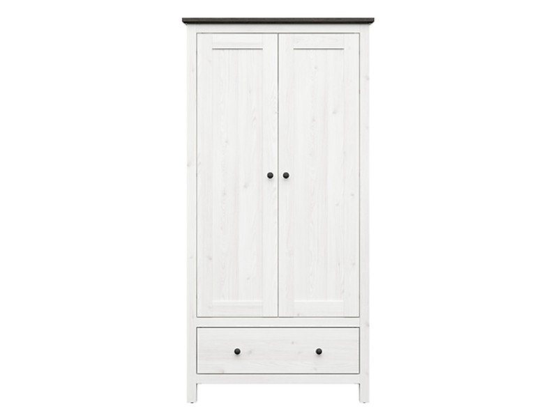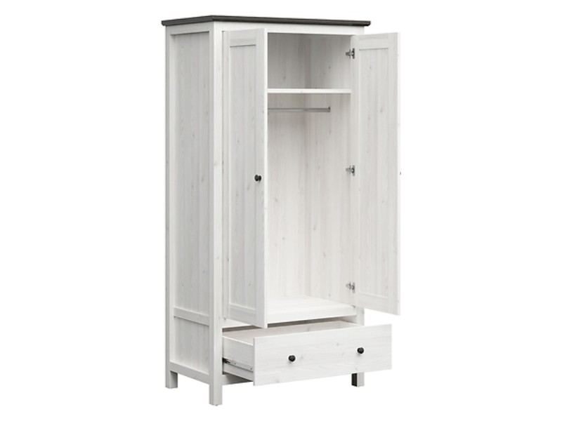 Tato šatní skříň je vyrobena z lamina v kombinaci barev modřín sibiu světlý/borovice larico. Úložný prostor je v podobě šatní tyče a police, zásuvka ve spodu - viz doplňkové foto. Úchytky jsou kovové, se systémem tichého dovírání.